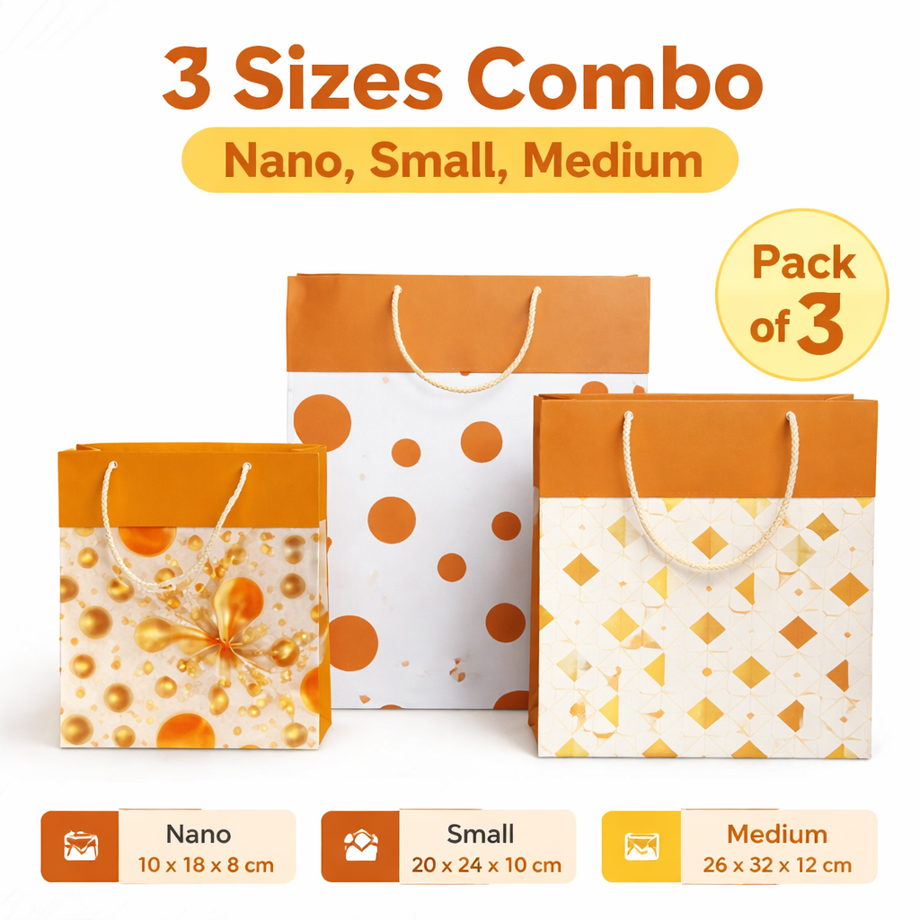 - 🎁 Combo Pack of 3 Practical Sizes Includes Nano, Small, and Medium gift bags designed to fit a variety of gifts such as cosmetics, accessories, small gadgets, chocolates, and clothing items.
