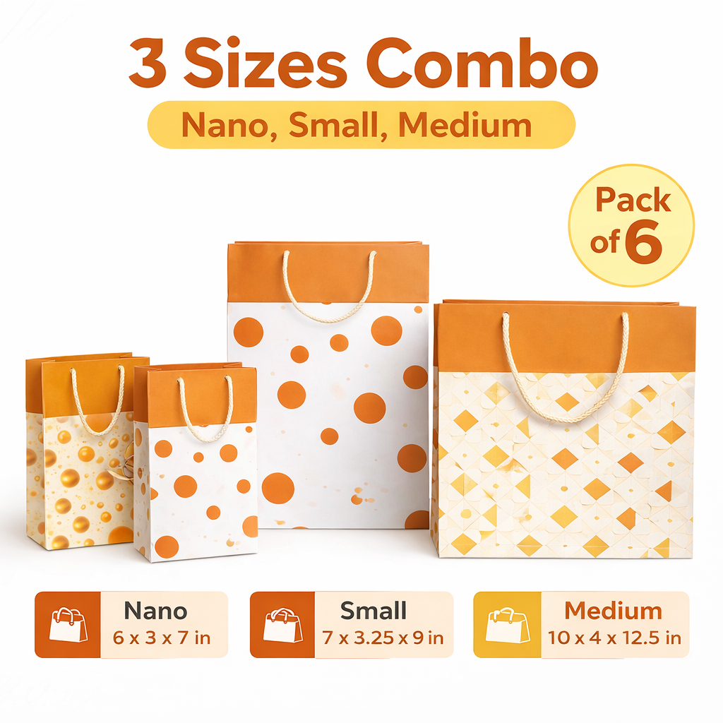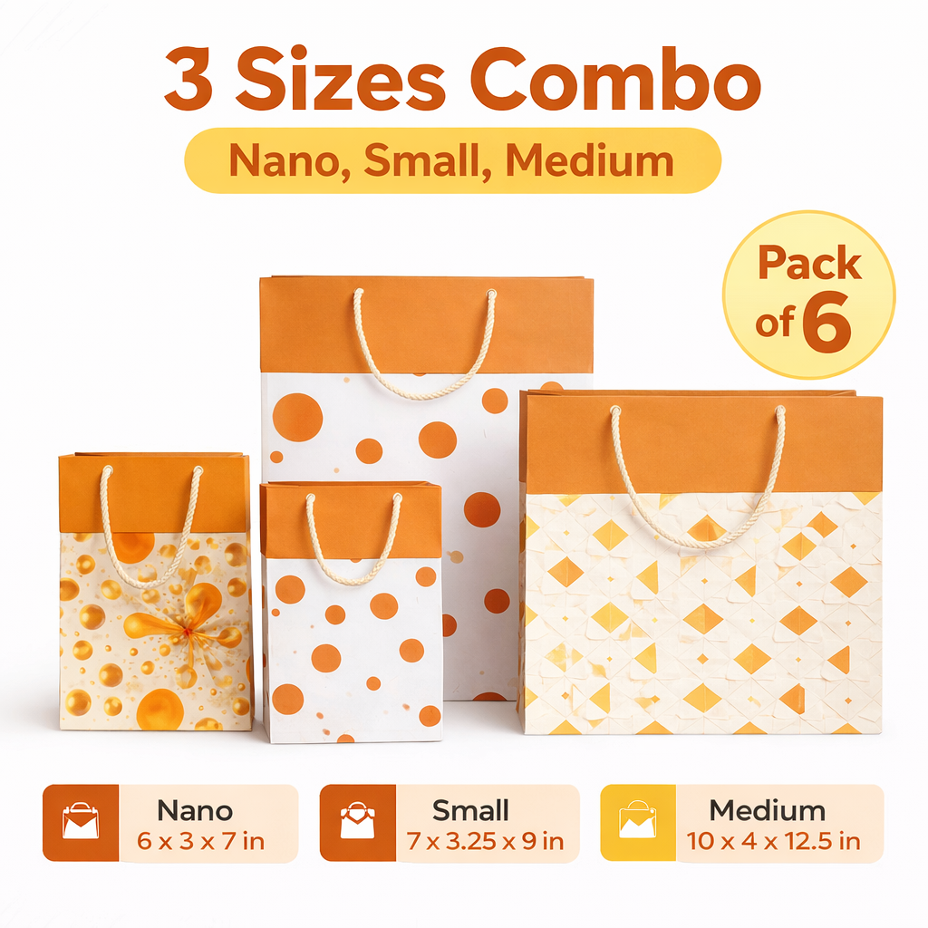 Make every gift look special with the Eternera Premium Gifting Paper Bags Combo Pack of 3. This stylish set includes three different sizes – Nano, Small, and Medium, designed to suit a wide range of gifting needs. These bags come in beautiful designer patterns that enhance the appearance of your gift while maintaining a premium and elegant look. Crafted from strong, high-quality paper, they are durable enough to carry small to medium gifts safely. The sturdy rope handles make them convenient to carry, while the reusable design makes them an eco-friendly gifting option. Whether you are preparing gifts for birthdays, weddings, festive celebrations, corporate events, or return gifts, these bags provide a stylish and convenient packaging solution. Upgrade your gift presentation with Eternera premium gifting paper bags and make every occasion memorable.